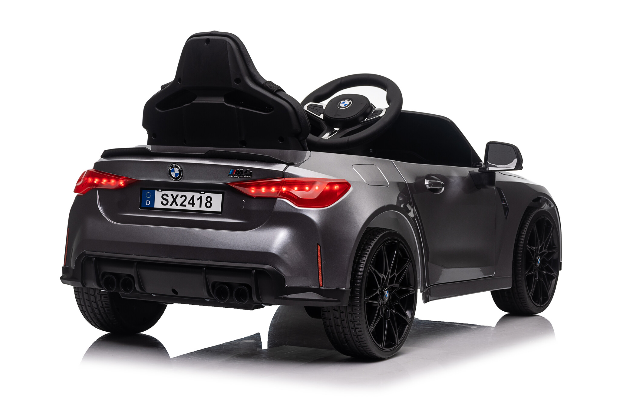 Deze waanzinnige metallic grijze BMW M4 kinderauto is super sportief. De details van deze BMW M4 accu kinderauto zijn niet van het echt te onderscheiden. De elektrische kinderauto BMW M4 is geschikt voor kinderen van 1 t/m 4 jaar.
