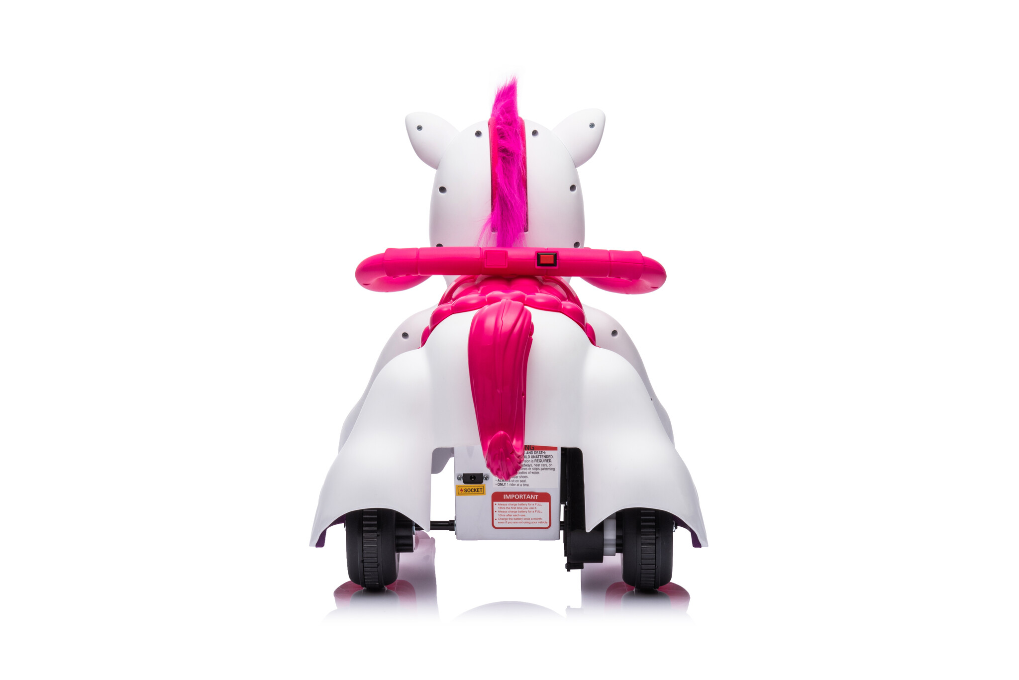 Stimuleer de fantasie van een kind met deze rijdbare elektrische eenhoorn! Je kan voor - achteruit rijden met deze leuke eenhoorn, uitgevoerd met een 12 volt accu. De snelheid is ongeveer 4 km per uur en sturen doe je via de beugel.