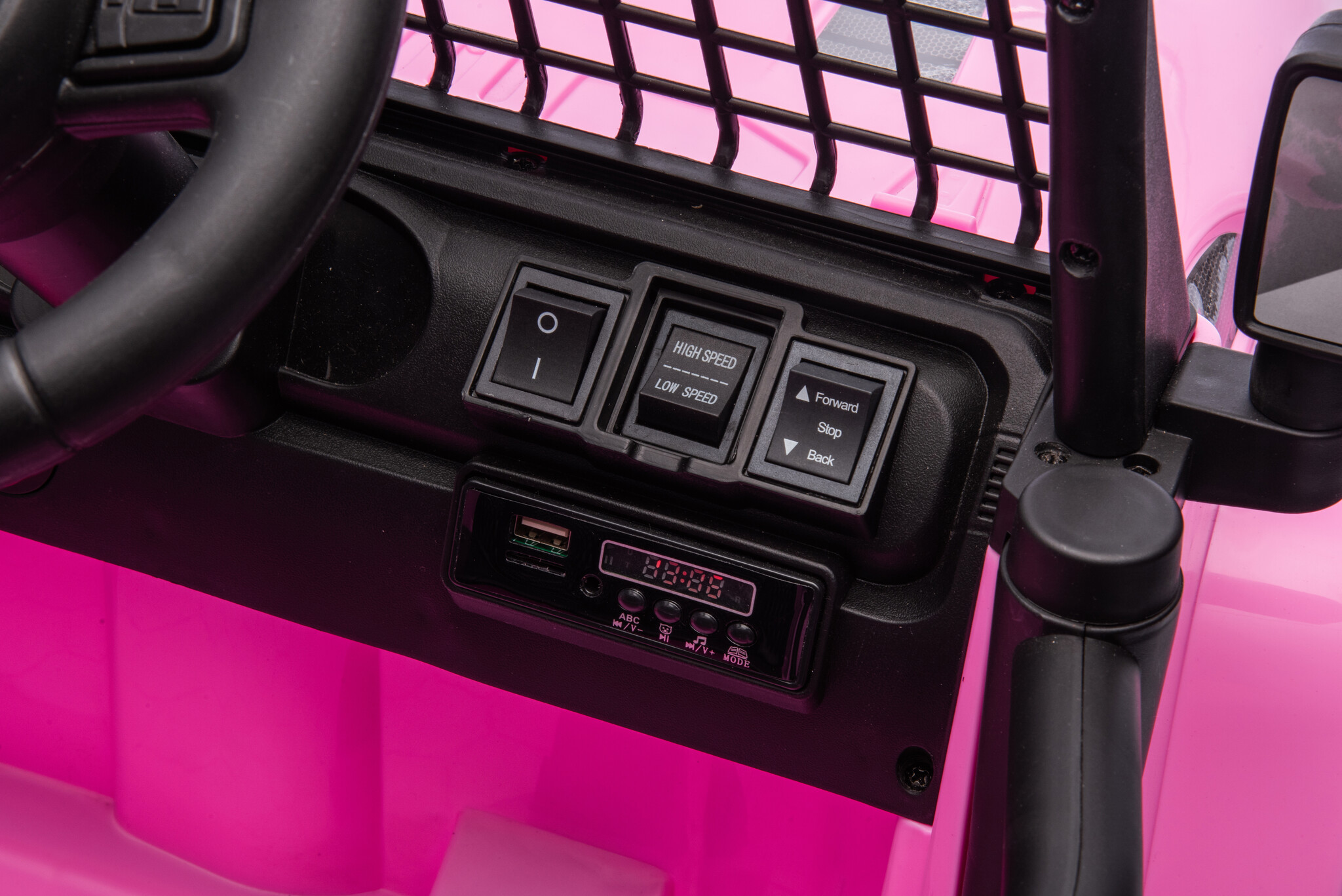 Deze Roze kinderauto is voorzien van 2 krachtige 12 volt motoren en rijdt met 3 verstelbare snelheden tussen de 2 en 5 km per uur. Met zijn “soft start” voelen kinderen geen schokje bij het optrekken. Verder is kinderauto voorzien van een heup gordel, geveerde wielen, 2 echte deuren, werkende ledlampen, dashboard verlichting, USB- MP3- en mini SD-ingang om eigen muziek af te spelen.