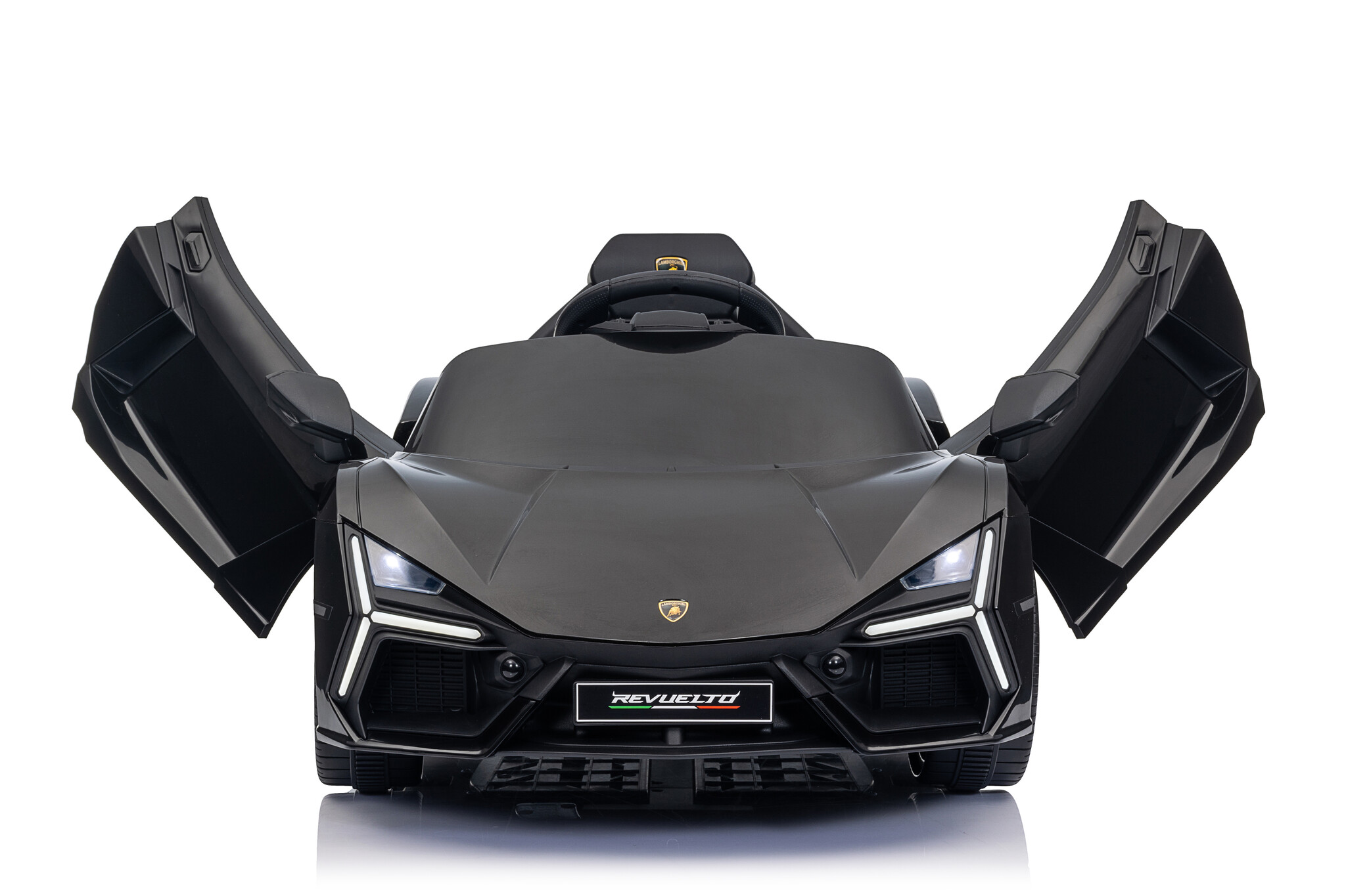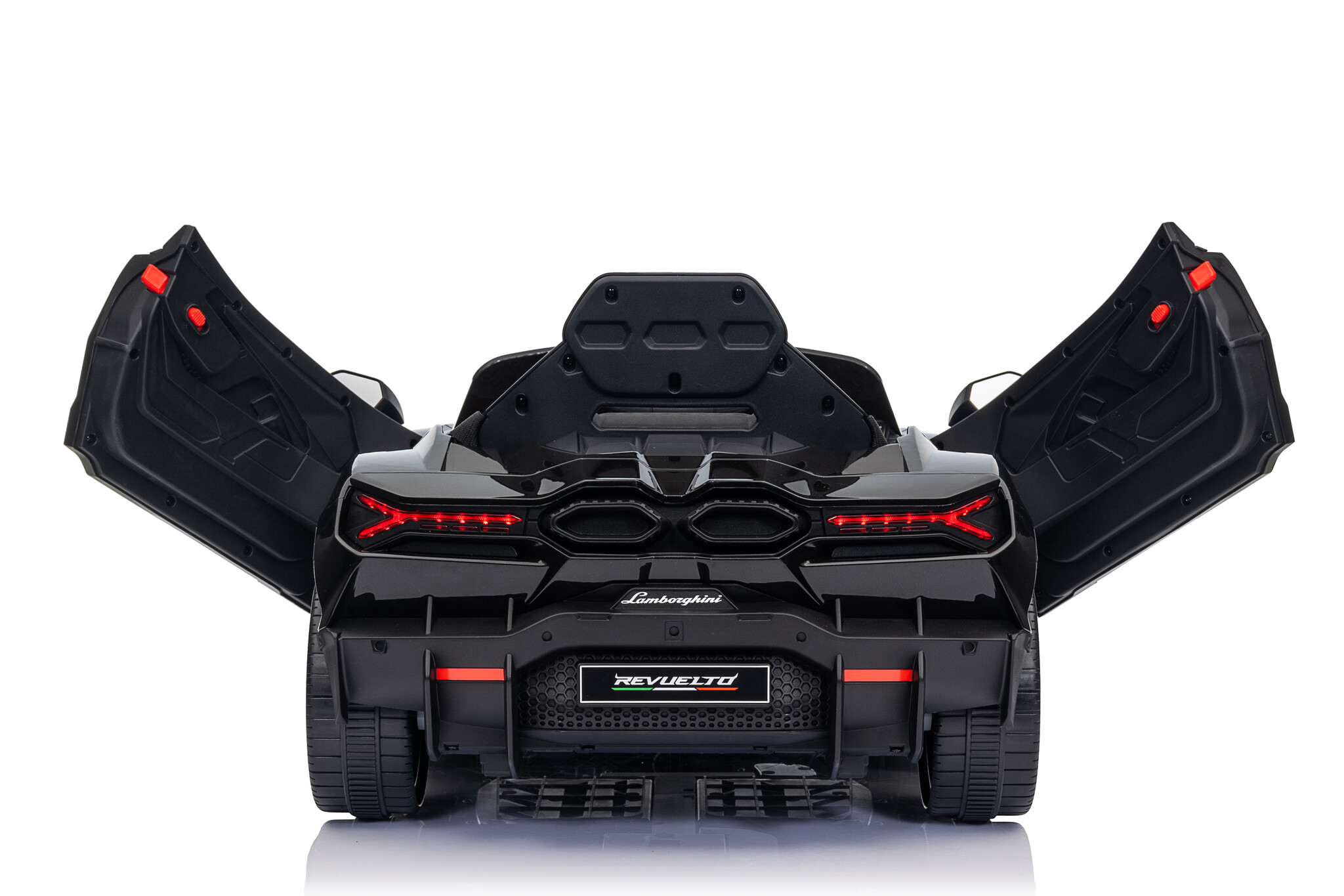 Deze Lamborghini Revuelto elektrische kinderauto in de kleur zwart is werkelijk prachtig. Een beest in de straten! Met zijn vleugeldeuren is dit voor kinderen de ultieme beleving! De Lamborghini Revuelto kinderauto is geschikt voor kinderen van 1 t/m 4 jaar en biedt veel mogelijkheden om de rijervaring voor uw kind compleet te maken.