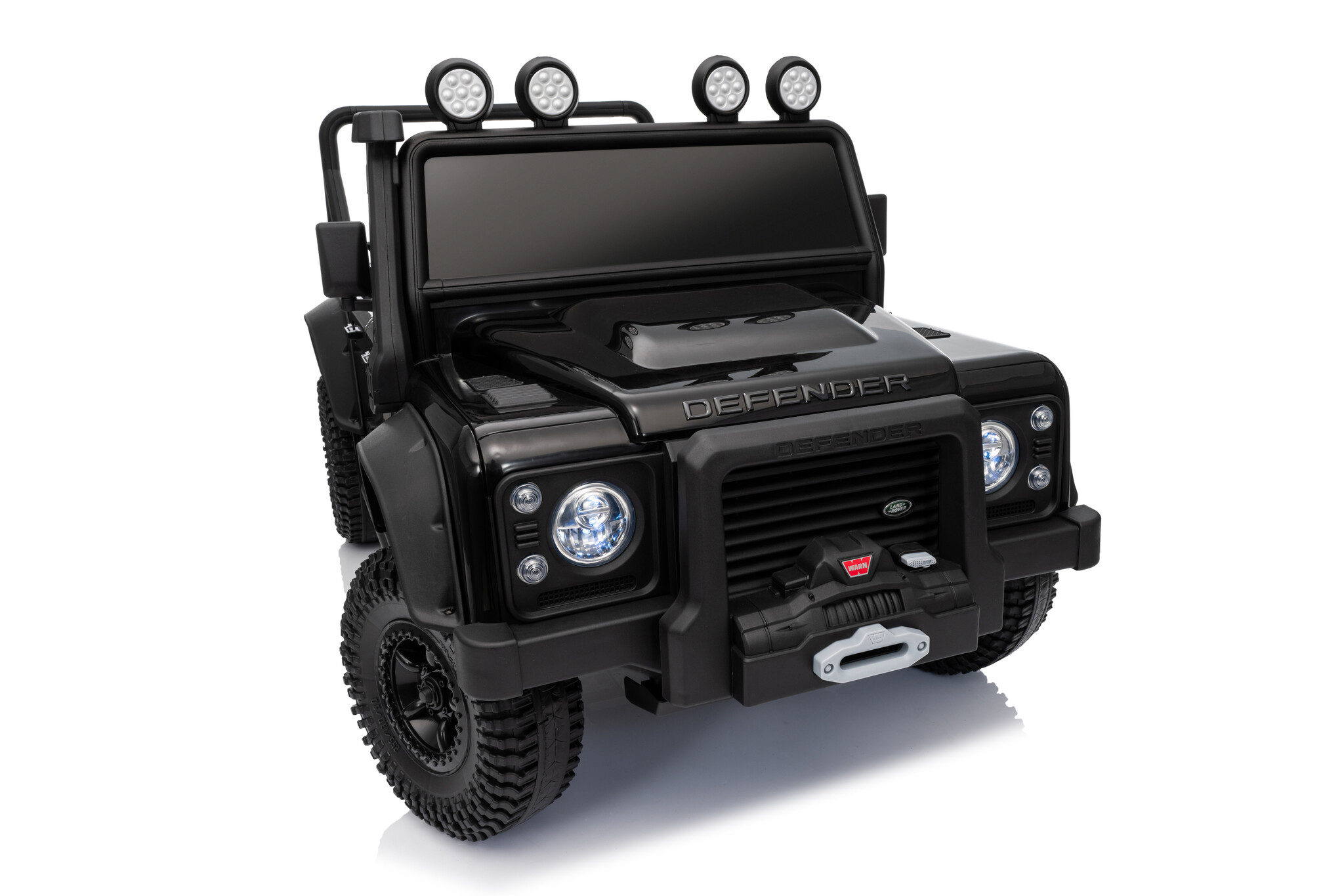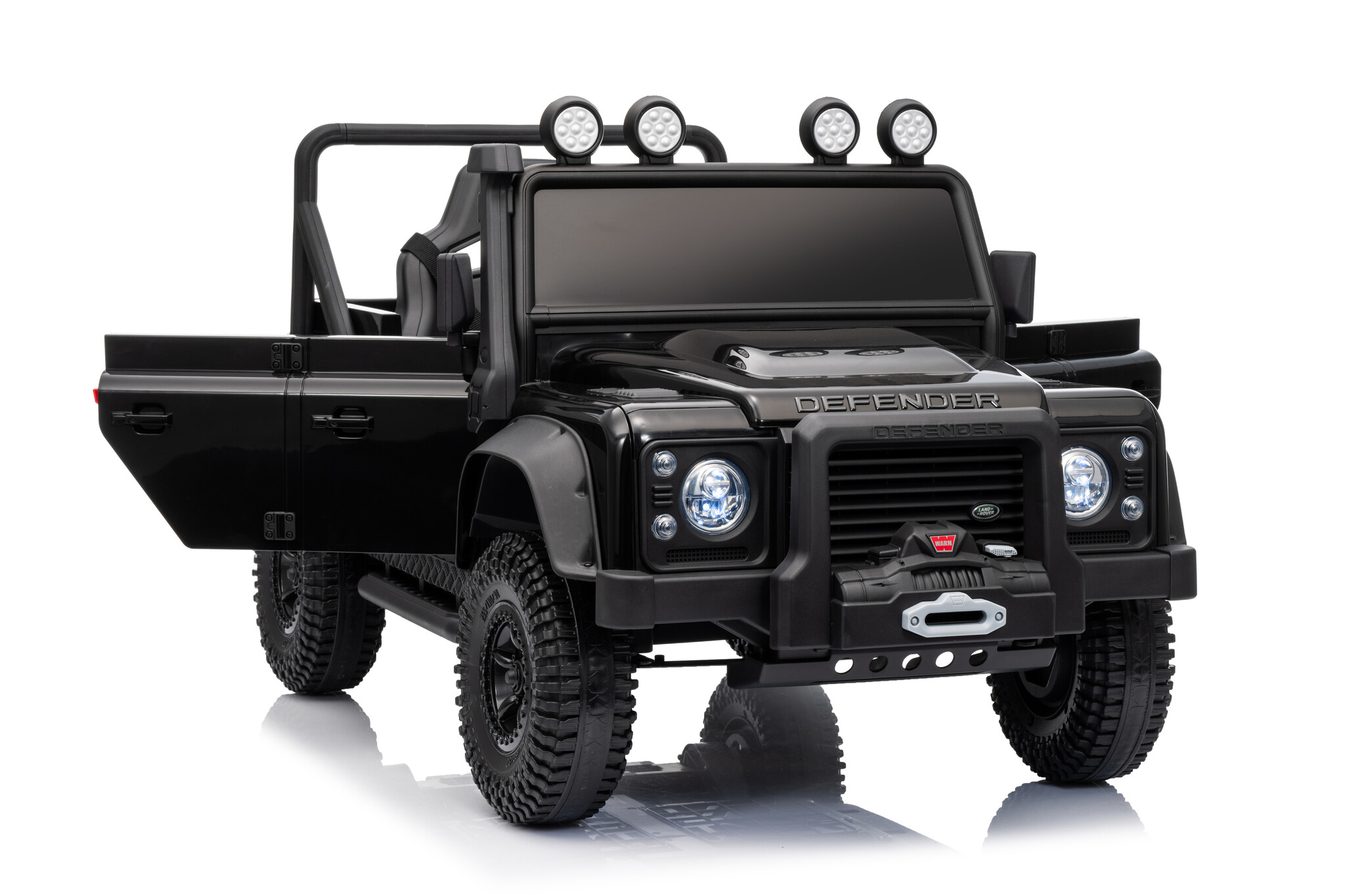 Laat kinderen rijden in echte off-road stijl met deze elektrische Land Rover Defender kinderauto. Deze robuuste terreinwagen is ontworpen voor avontuur en ziet eruit als een echte Defender. Met zijn stoere zwarte design, grote banden en realistische details is dit dé droomauto voor jonge avonturiers.