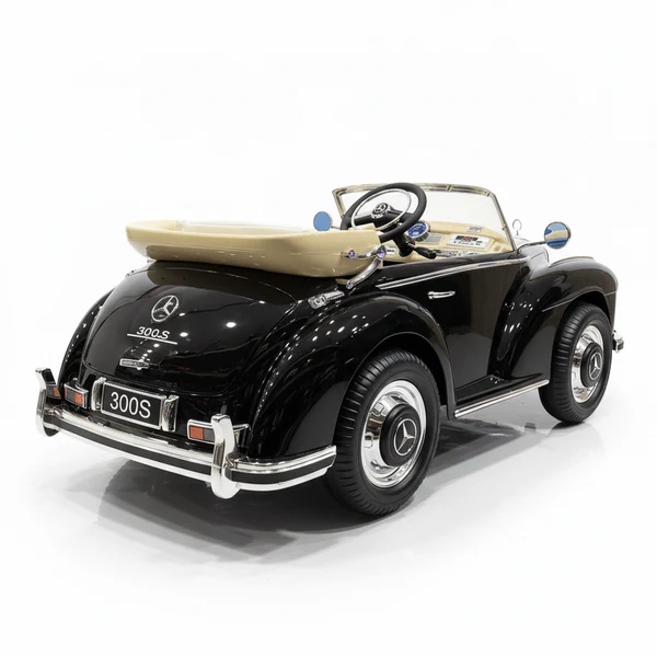 Dit prachtige klassieke model zal gegarandeerd uw kind verassen! De metallic zwarte Mercedes 300S kinderauto is geproduceerd onder licentie van Mercedes-Benz en geschikt voor kinderen van 1 t/m 5 jaar.