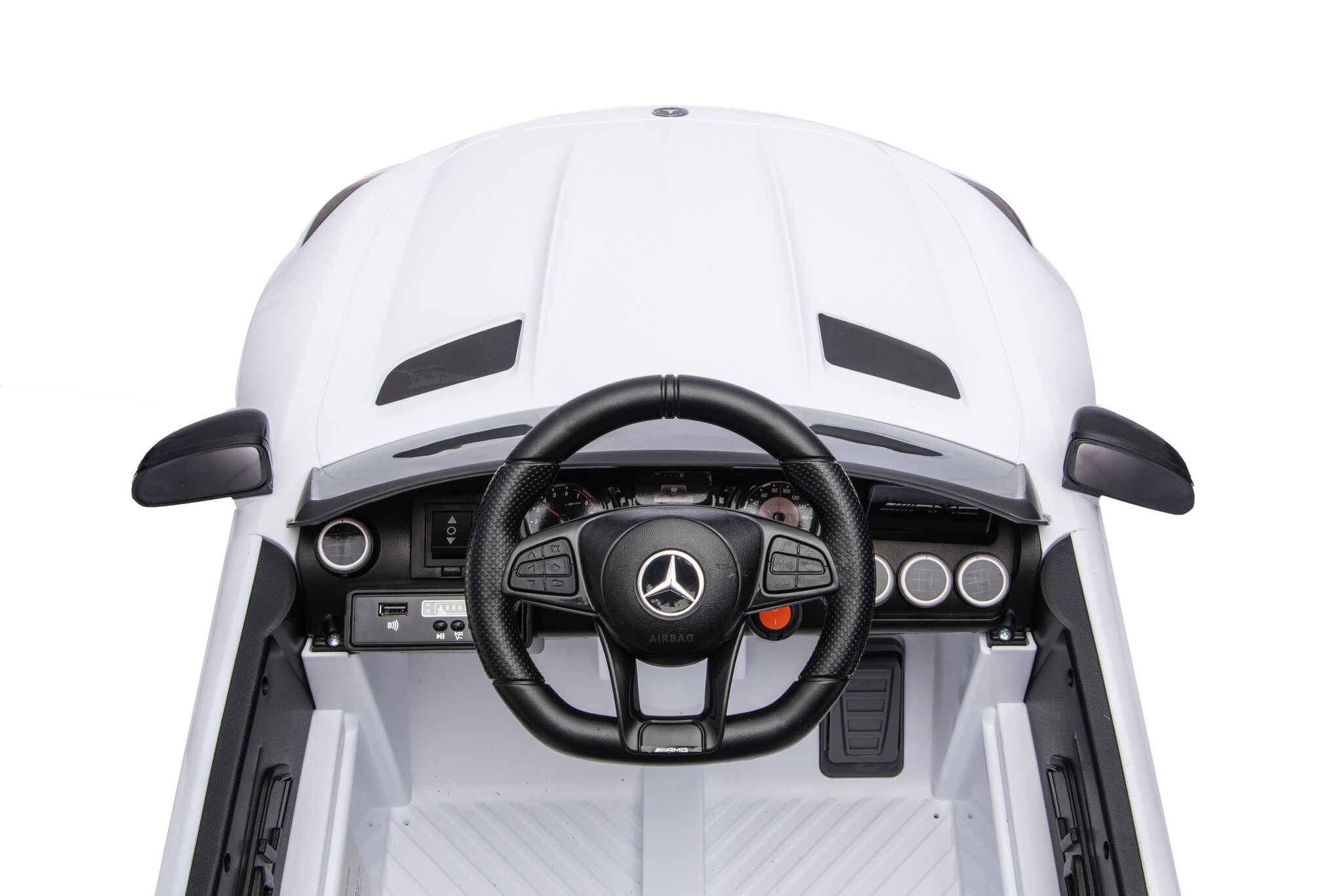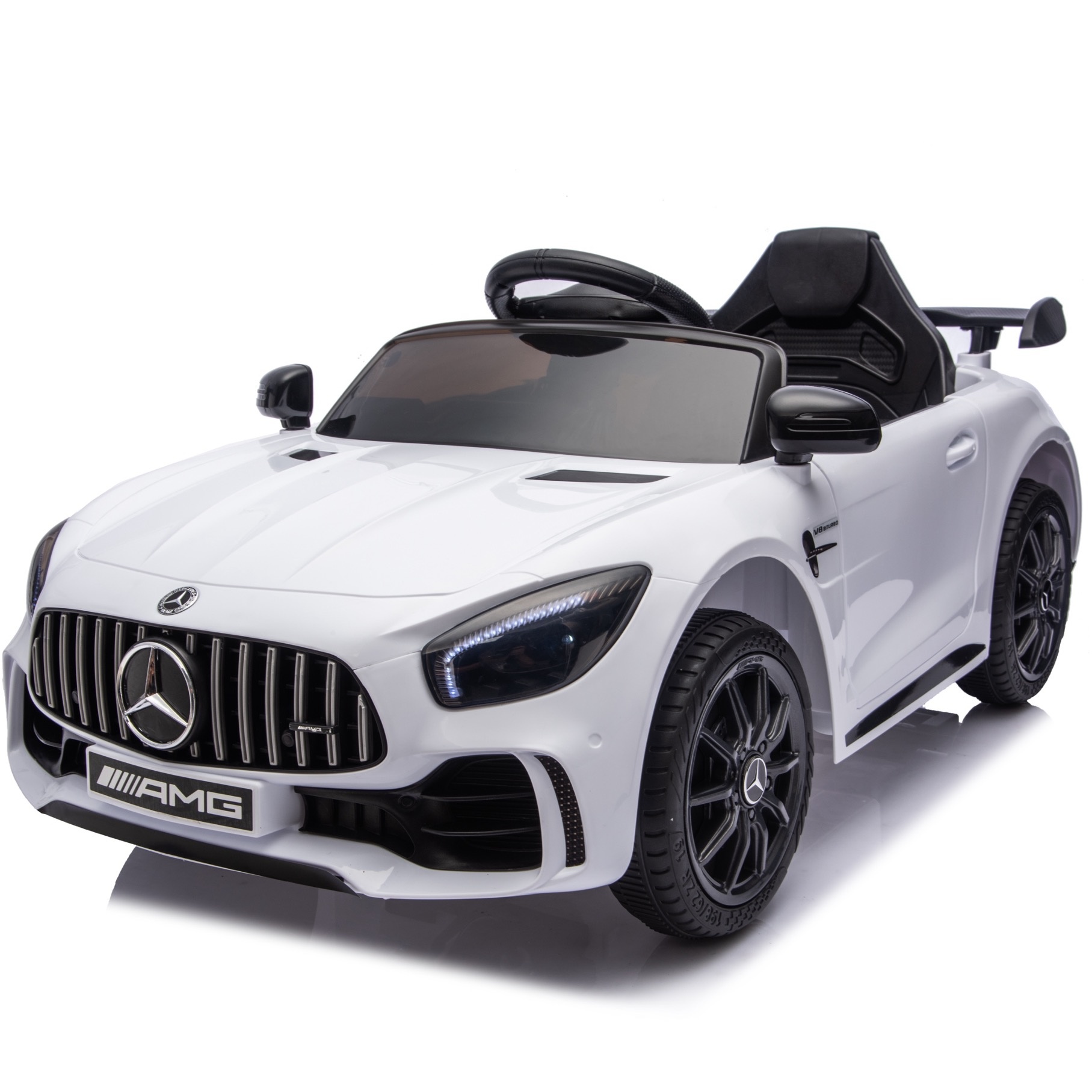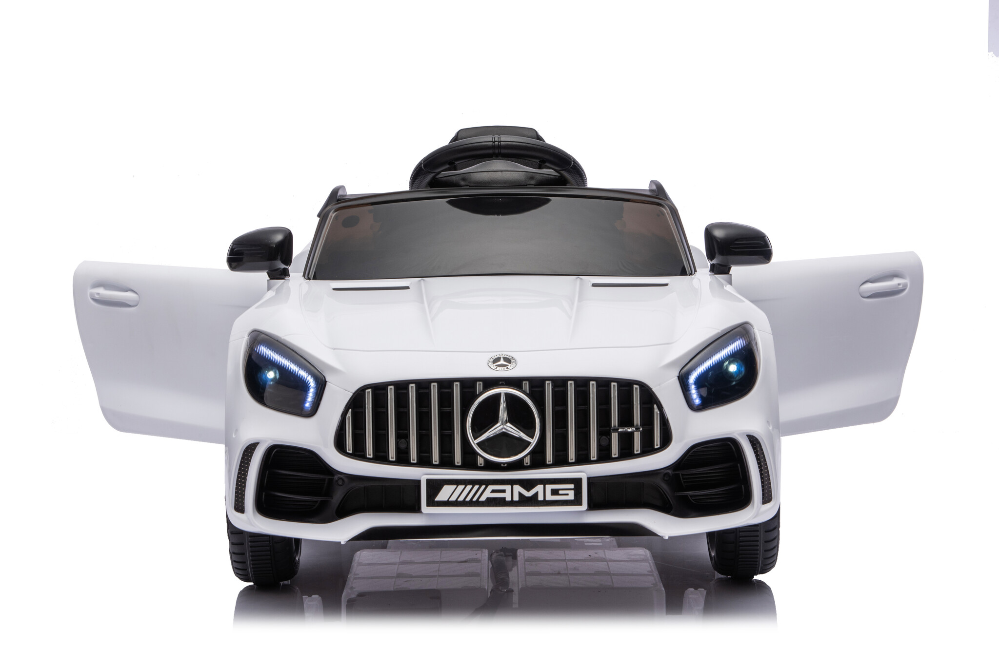 Deze accu auto heeft 12 volt vermogen en 2 krachtige aandrijf motoren van 30 watt. Het interieur van de Mercedes AMG GTR is netjes afgewerkt. De elektrische kinderauto heeft een echte vering en en diverse licht- en geluidsfuncties. Door middel van het soft start systeem voelen kinderen geen schokje bij het optrekken. Extra comfortabel en veilig!