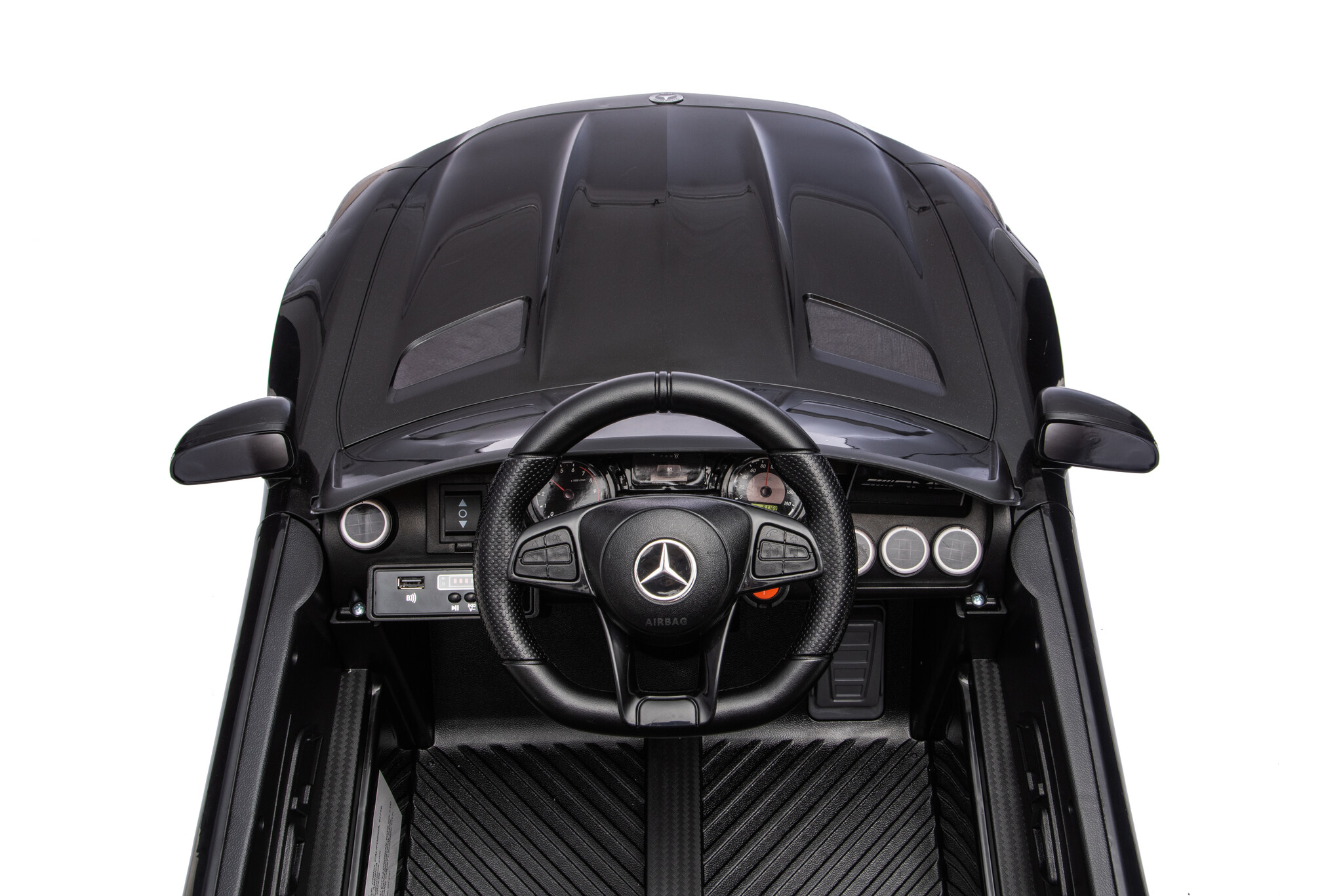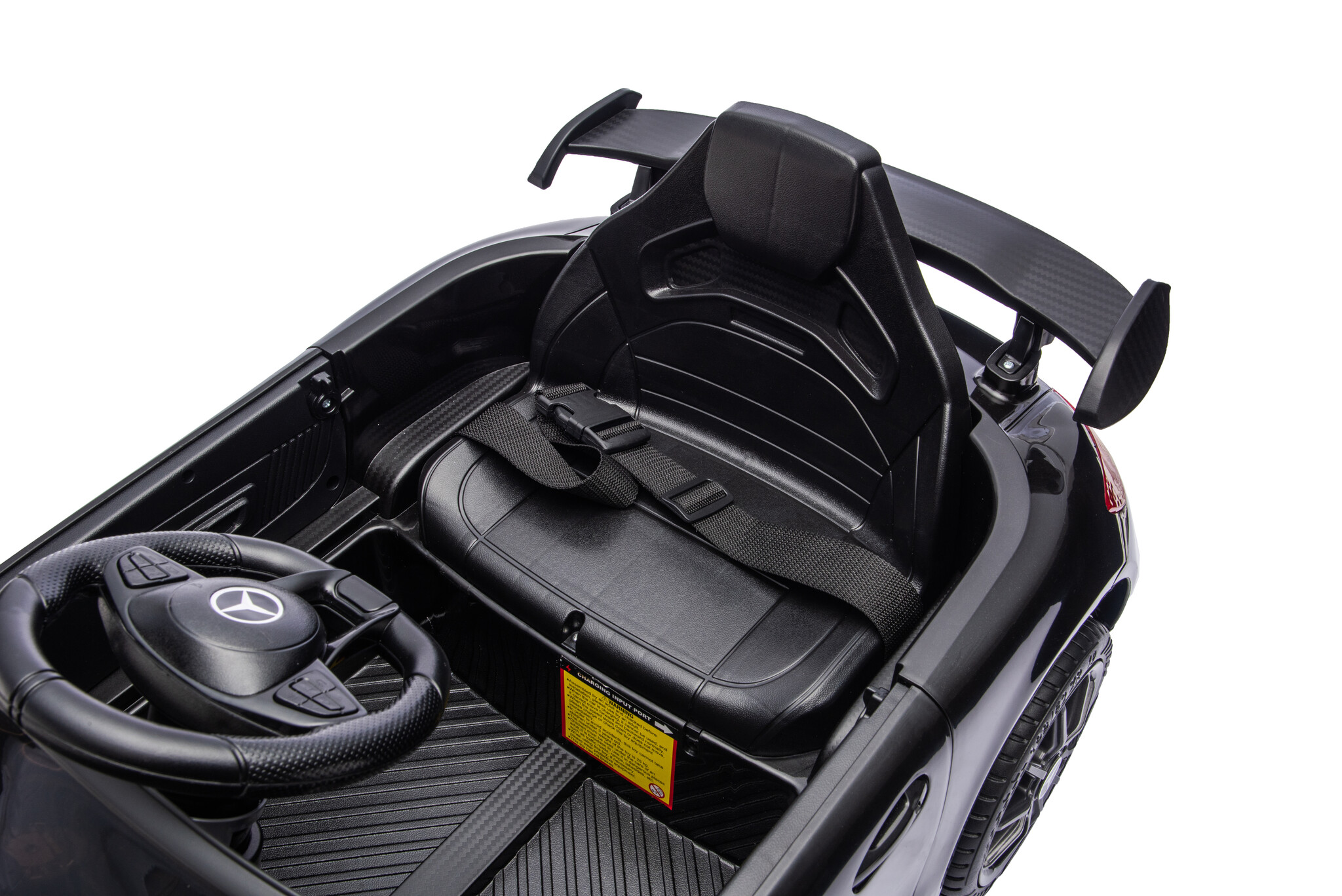 Deze accu auto heeft 12 volt vermogen en 2 krachtige aandrijf motoren van 30 watt. Het interieur van de Mercedes AMG GTR is netjes afgewerkt. De elektrische kinderauto heeft een echte vering en en diverse licht- en geluidsfuncties. Door middel van het soft start systeem voelen kinderen geen schokje bij het optrekken. Extra comfortabel en veilig!
