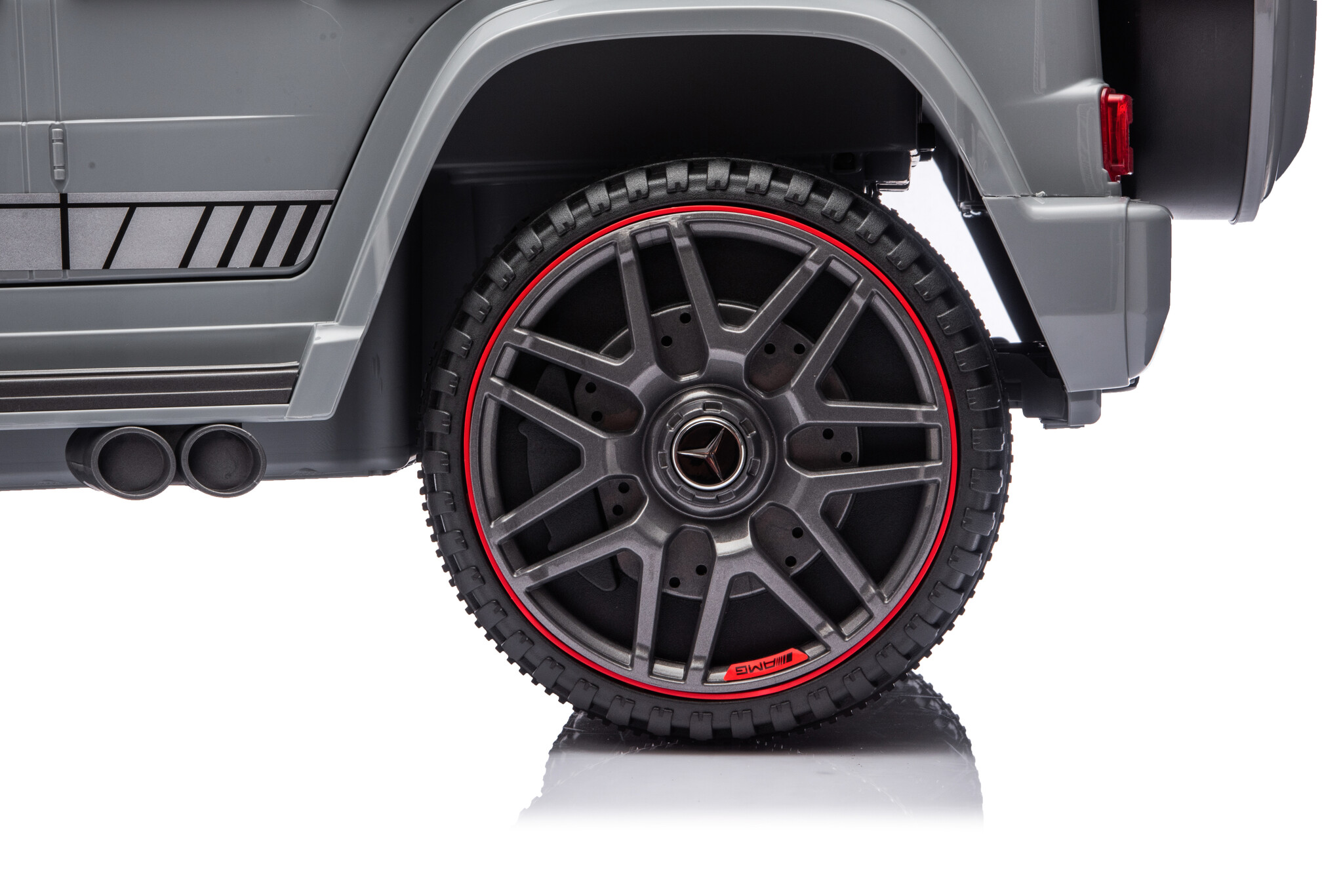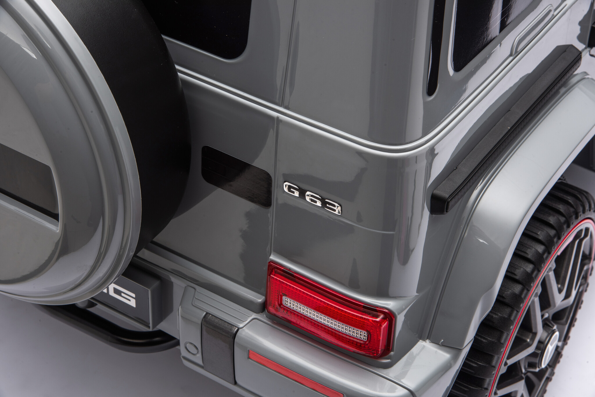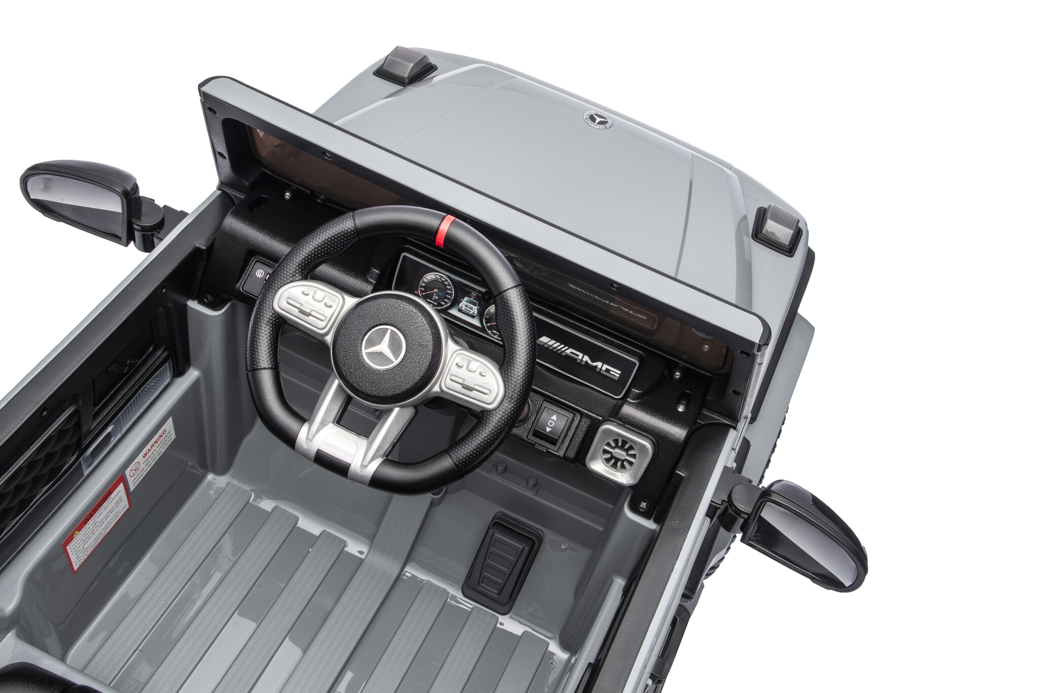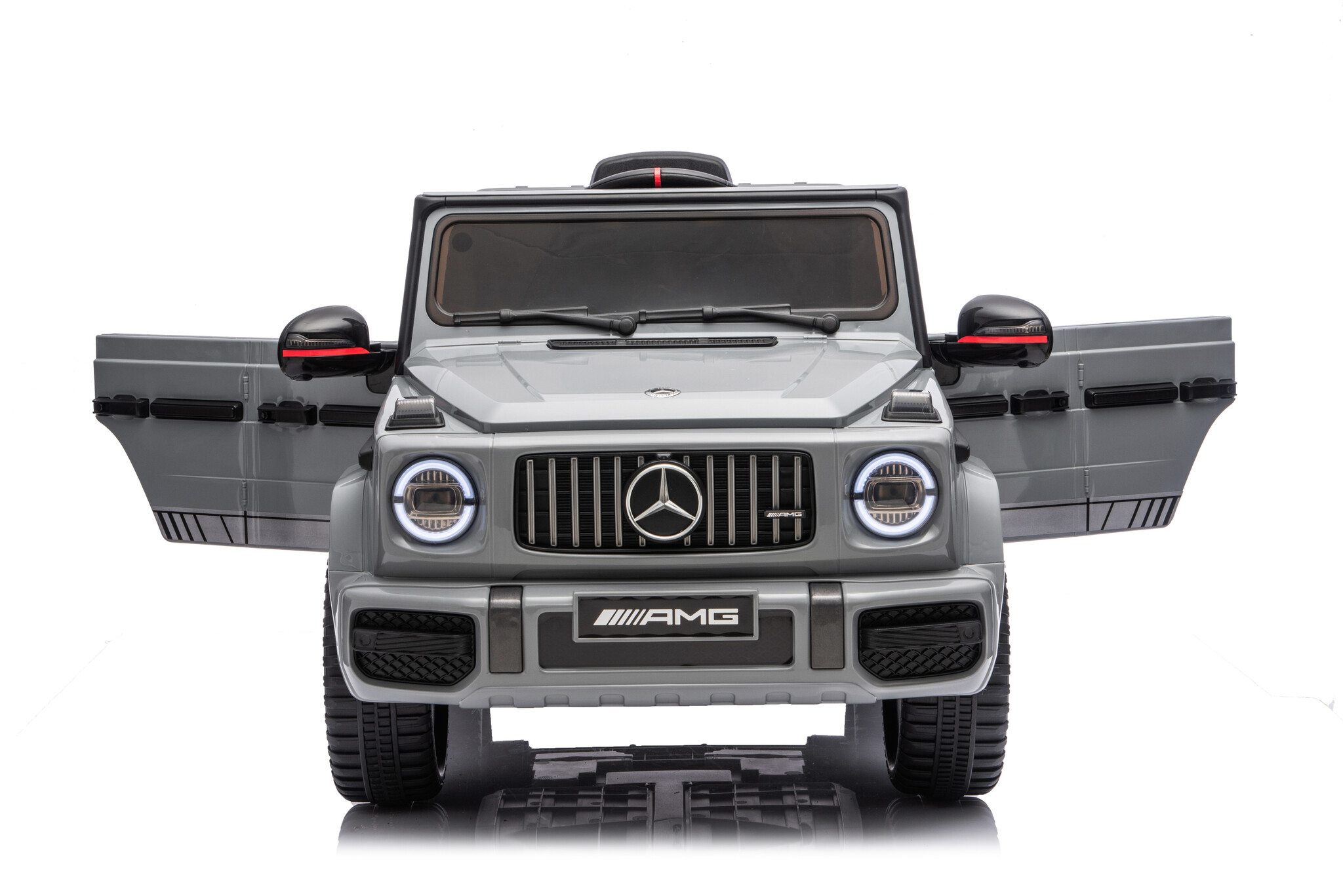 De Mercedes Benz G63 Cabrio AMG accu kinderauto in het grijs is een zeer populair model onder de kinderen en volwassenen. Door zijn mooie rode accenten maakt die deze grijze Mercedes Benz G63 Cabrio kinderauto een absoluut beest. Deze Mercedes G63 Cabrio elektrische kinderauto is geschikt voor kinderen van 1 tot 4 jaar.
