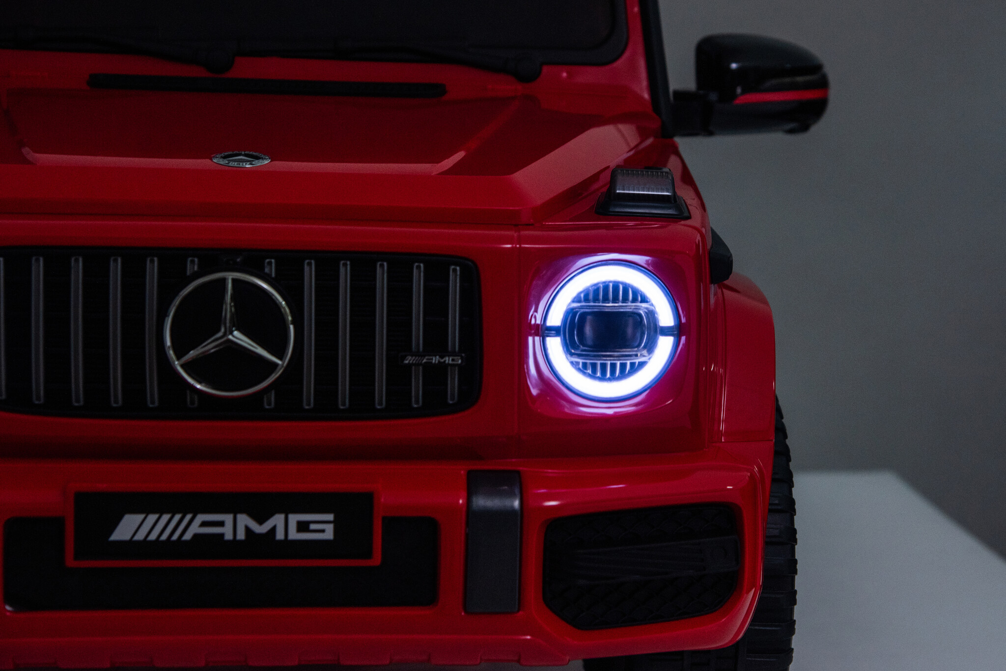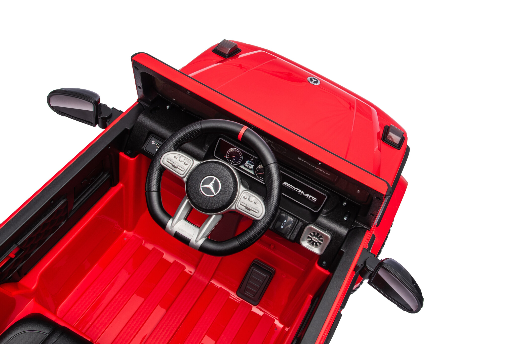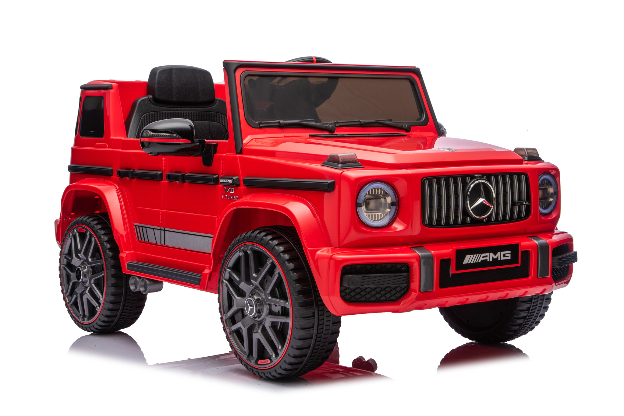 De Mercedes G63 AMG Cabrio 12V Kinderauto in het rood is een zeer populair model onder de kinderen en volwassenen. Deze Mercedes Benz G klasse elektrische kinderauto met rode accenten maakt enorme indruk bij uw kind in de wijk! Deze Mercedes kinderauto is geschikt voor kinderen van 1 tot 4 jaar.