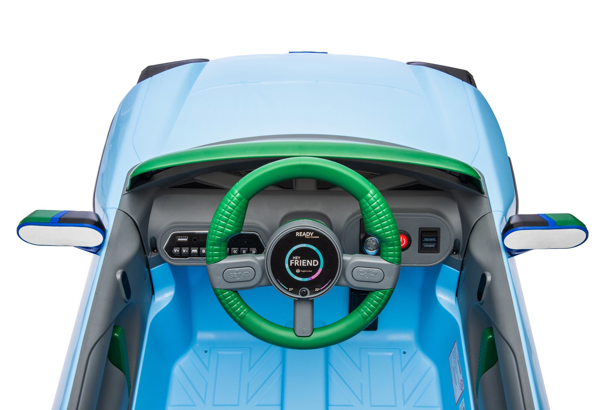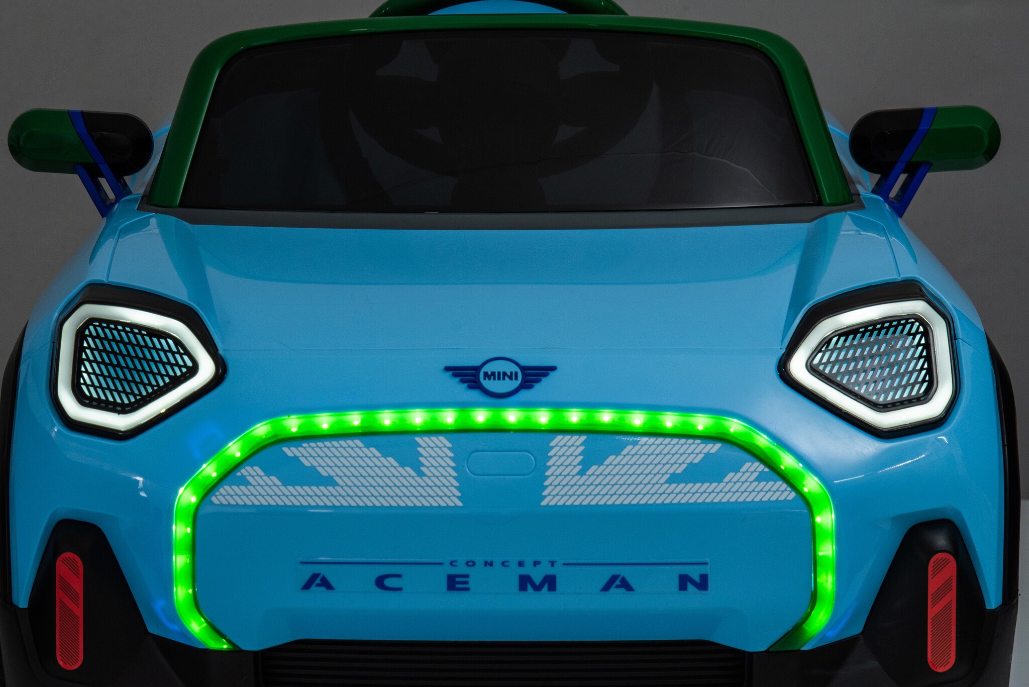 De super leuke Mini Aceman elektrische kinderauto in de kleur blauw is voor veel kinderen een echte droom.