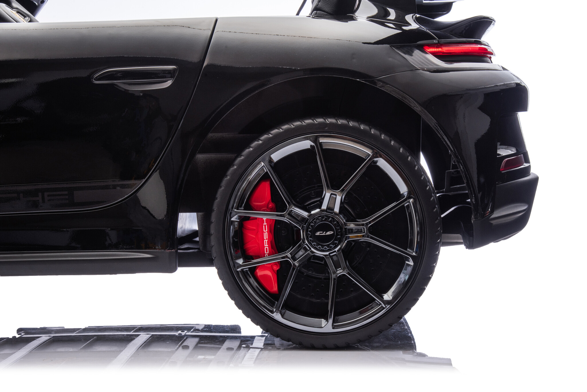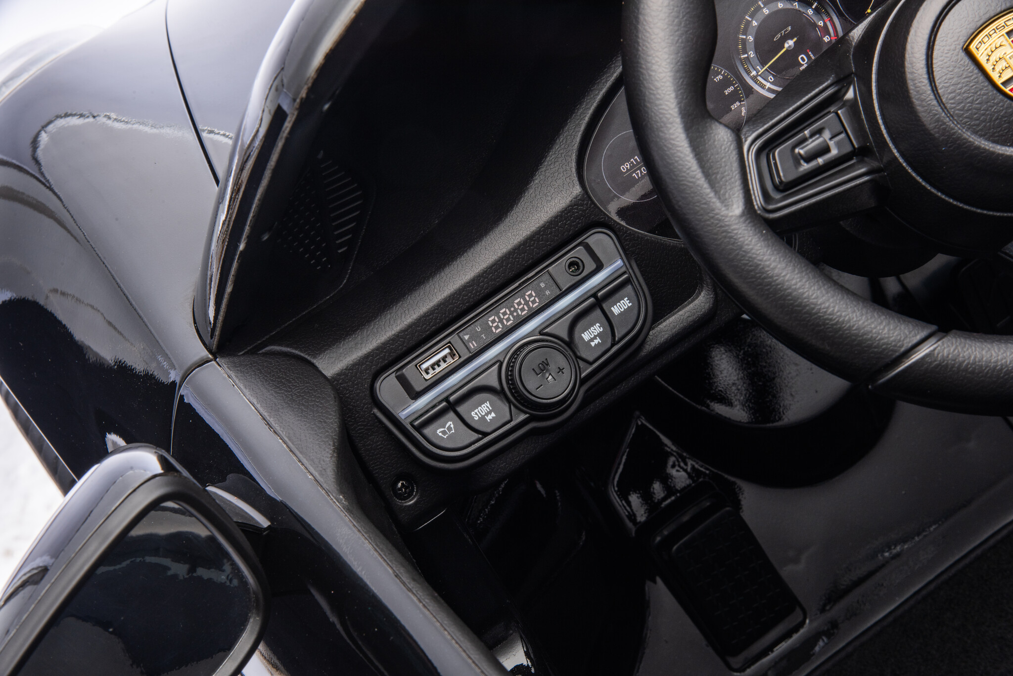 Ouders kunnen de auto volledig besturen, de snelheid instellen en de auto op afstand blokkeren indien nodig. Met zijn 24 volt vermogen en 4 krachtige aandrijfmotoren 200 Watt is deze auto in staat om over gras en onverharde grond te rijden. Het interieur van de Porsche 911 is afgewerkt met een prachtige leren/suède stoel, gordel en vloermatjes van Porsche. Verder heeft de auto een echte vering, rubberen banden en diverse licht- en geluidsfuncties inclusief bluetooth. Het soft start systeem zorgt ervoor dat kinderen geen schokje voelen bij het optrekken. Extra comfortabel en veilig!