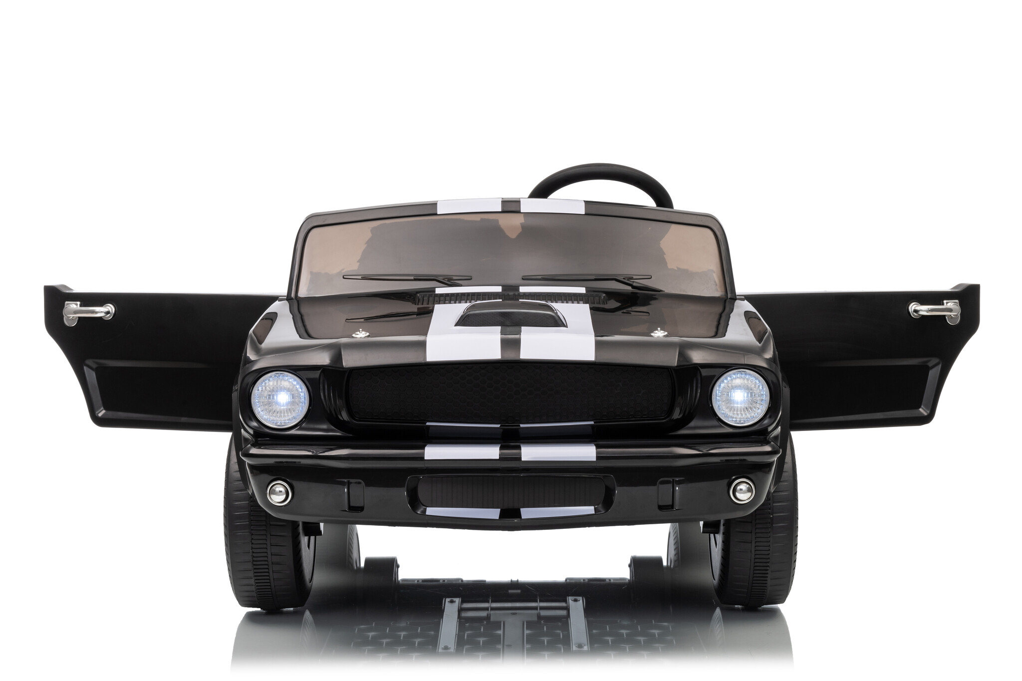 Deze elektrische kinderauto Shelby GT350 24V IS voorzien van een 24V7ah accu en 4 motoren van 200 watt per motor. De 4 aandrijvingen zijn op de voor en achterwielen gevestigd, daarnaast heeft deze kinderauto voor kinderen verstelbare snelheden via de afstandsbediening tussen de 2 en 4,5 km per uur. Verder is deze kinderauto voorzien van rubberen banden, lederzitje, ledverlichting, muziek, USB, en mp3 ingang, 2 echte deuren en veel meer! Met de 'soft start' functie zal de auto de snelheid rustig opbouwen. U kind voelt dus geen schokje bij het optrekken.