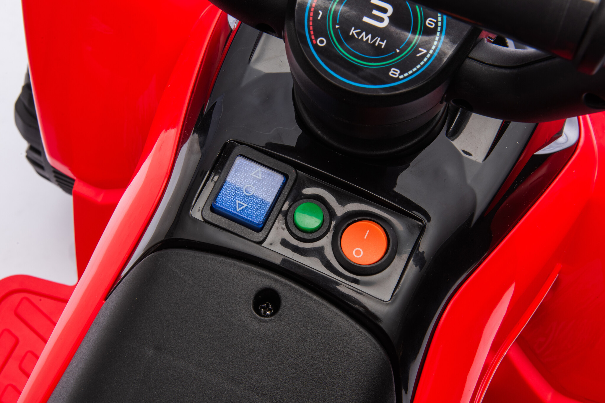 De Thunder elektrische kinder quad van 6V is een absolute aanrader voor jonge kinderen van 1 tot 3 jaar. De kinderen kunnen op deze quad oefenen voor het echte werk van 24 of zelfs 36V! De felle rode kinderlijke kleur zorgt voor de ultieme beleving.